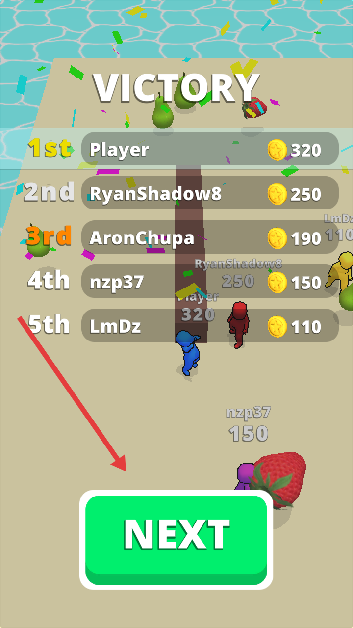4、关卡胜利后点击NEXT按钮进入下一关,继续挑战更多沙滩场景的收集关卡。