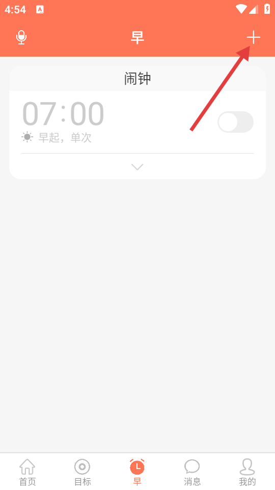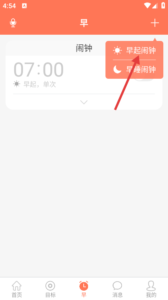3、在菜单中选择【早起闹钟】,进入早起闹钟设置界面。