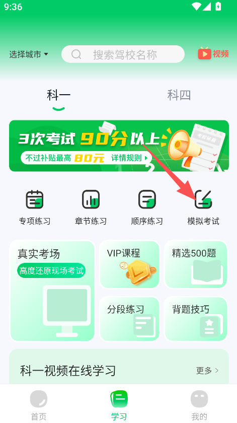 2、支持模拟考试功能,科目一模拟考试还原考场环境,学员提前演练,提升应试能力。