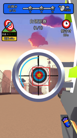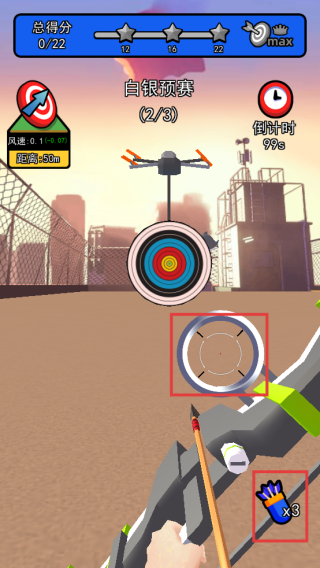 3、射击时利用瞄准镜精准对准靶心,同时注意【倒计时】剩余时间,在规定时间内尽可能命中高分区。
