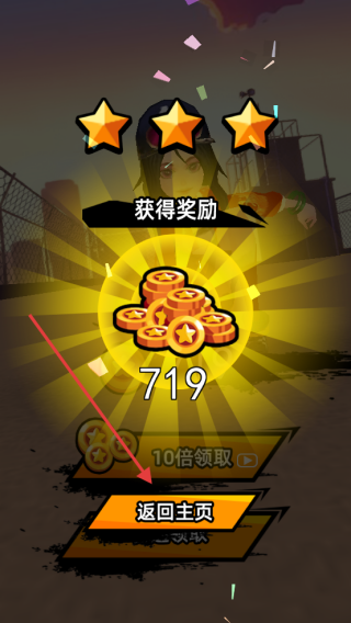 4、完成关卡后,可获得【719】金币奖励,点击【返回主页】可继续挑战或查看其他功能。
