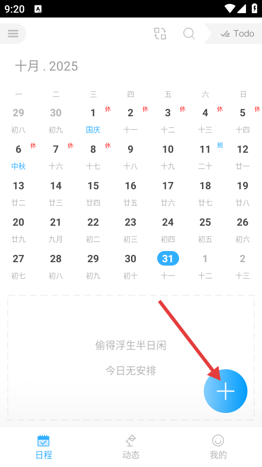 2、进入日程页面后,点击右下角蓝色【+】按钮,进入日程添加界面。