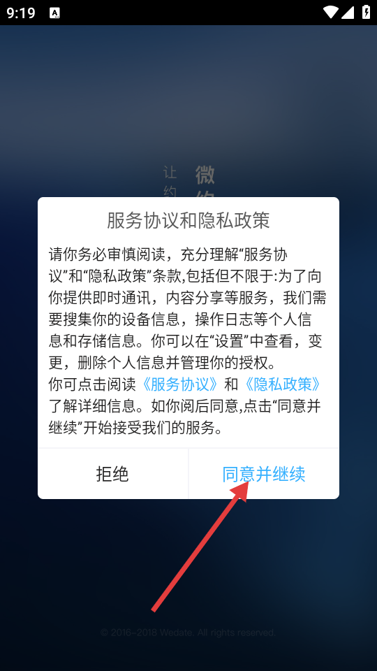 1、首次使用需点击【同意并继续】服务协议和隐私政策提示,方可进入软件。