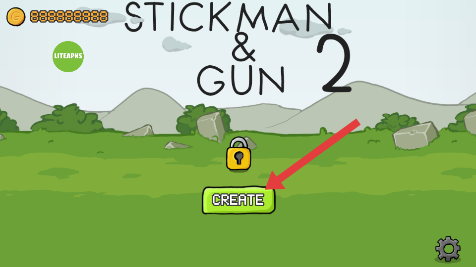 1、进入游戏后,点击【CREATE】按钮创建角色,开启火柴人射击冒险。