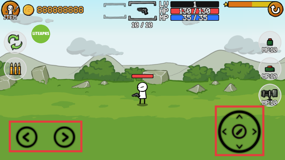 2、战斗中利用左右方向键移动,右侧控制盘调整射击方向,精准瞄准敌人发起攻击。