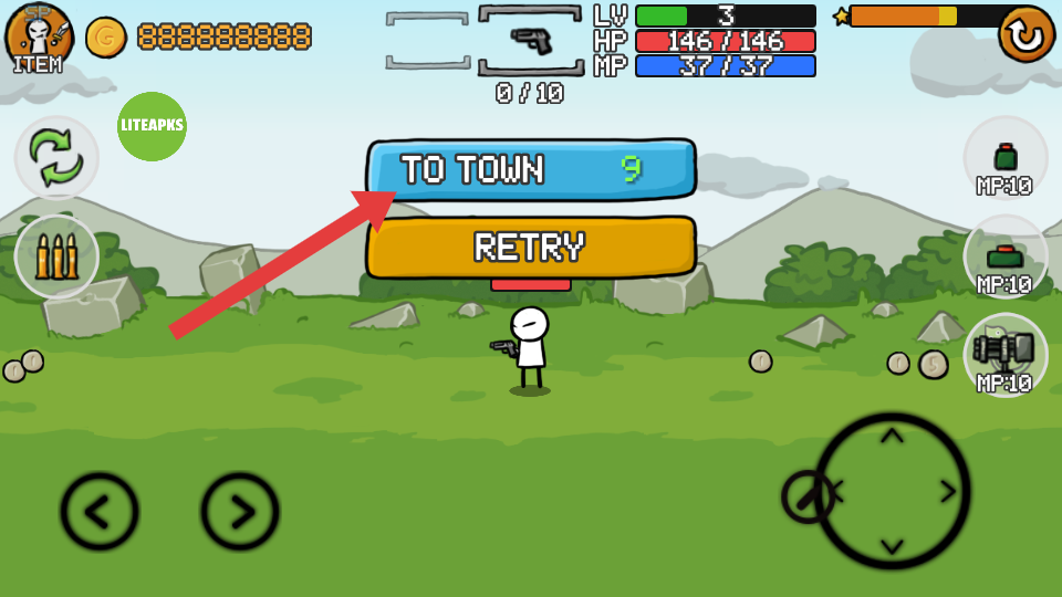 4、关卡阶段完成后,点击【TO-TOWN】按钮前往城镇,可在城镇中进行装备升级、技能解锁等操作。
