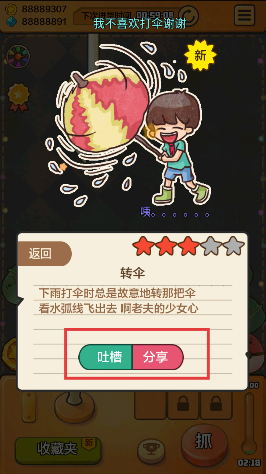 4、内置完善的社交分享系统,玩家可以将有趣的收集成果和精彩吐槽内容通过多种渠道分享给好友共同欣赏讨论。