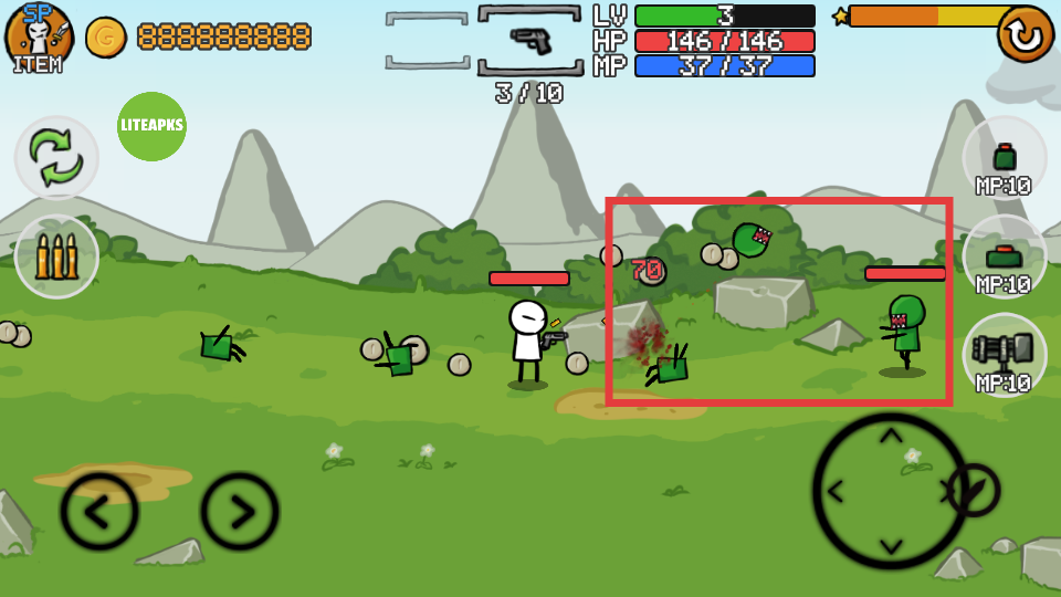 2、战斗中面对绿色怪物类敌人,借助无限金币带来的装备优势,精准射击消灭敌人,注意躲避其攻击。