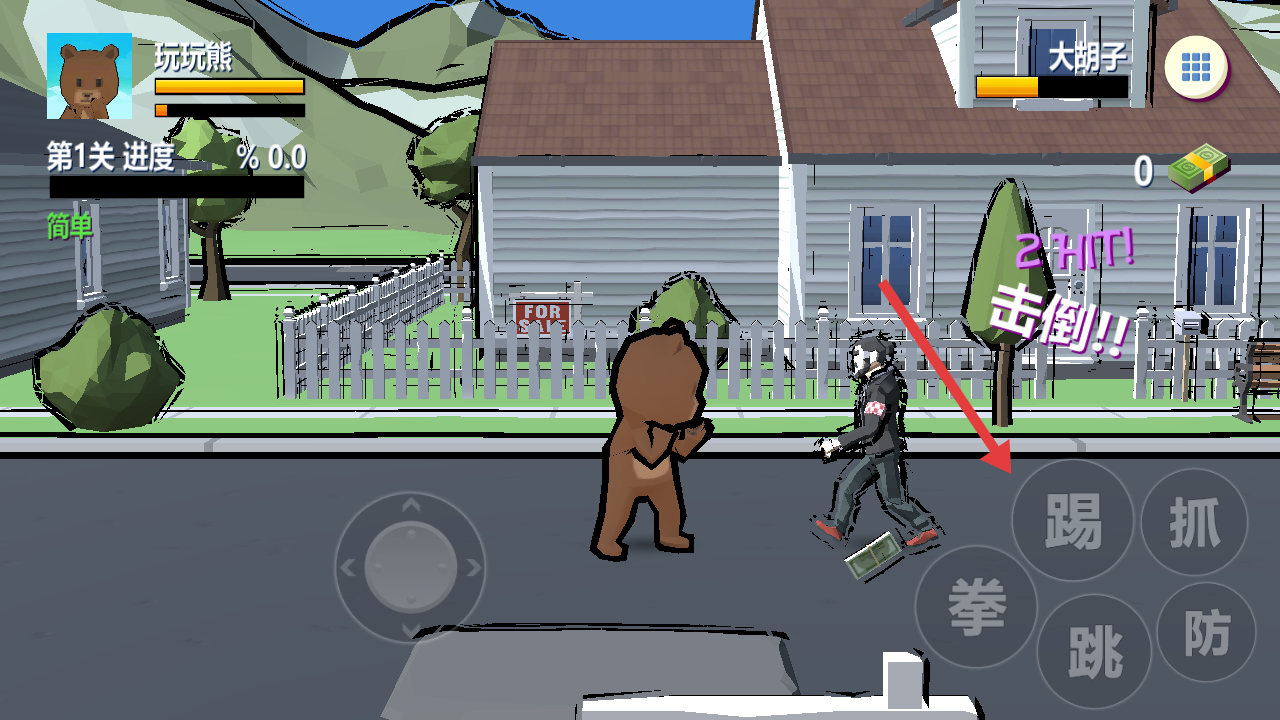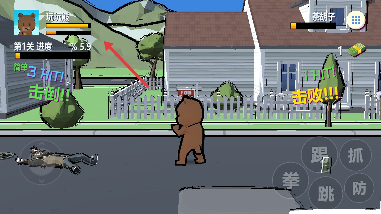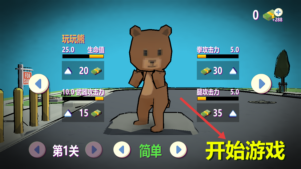 1、点击开始游戏,进入街道场景,操控玩玩熊开启格斗挑战。