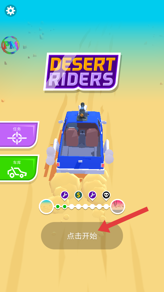 1、进入游戏后,点击【点击开始】按钮,开启沙漠汽车射击对战。