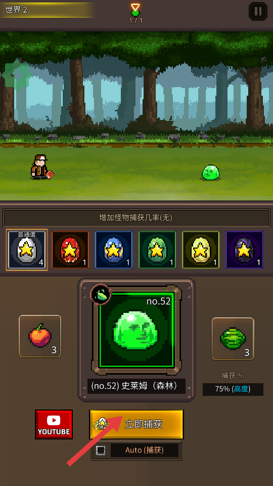 1、点击【立即捕获】,捕捉怪物,丰富队伍成员,提升战力。