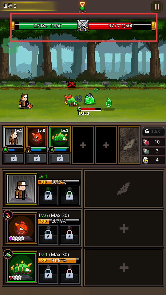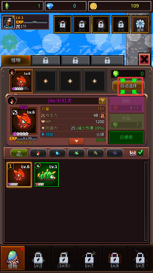 2、点击【自动选择】,管理怪物队伍,优化战力配置,推进游戏进程。