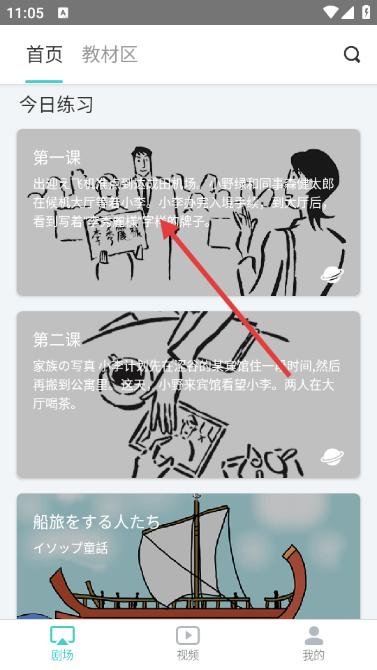 1、在首页“今日练习”板块,点击“第一课”,进入第一课学习页面。