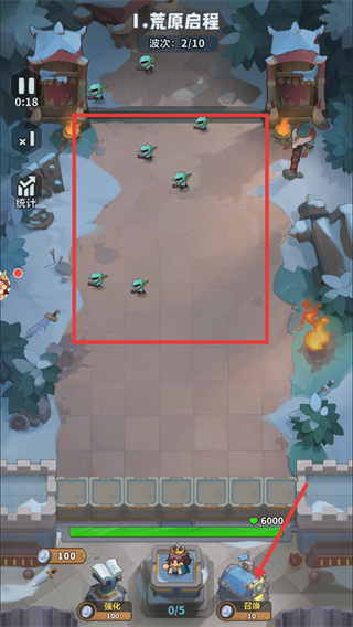 3、在【波次:2/10】时,点击【召唤】按钮召唤英雄抵御敌人。
