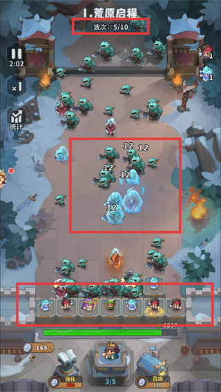 4、【波次:5/10】时,合理布置英雄防御,抵御大量敌人进攻。