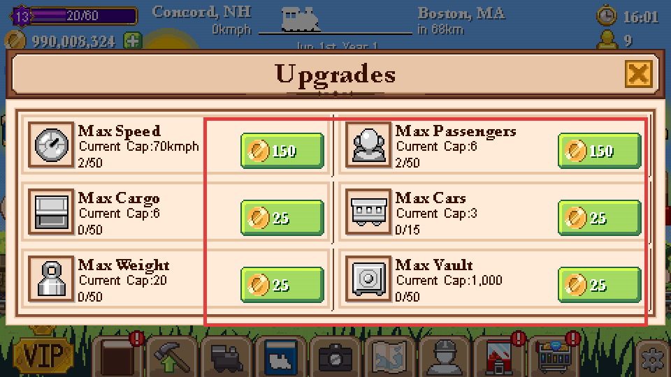 1、升级列车属性,如最大速度、乘客数等,提升列车运营能力。