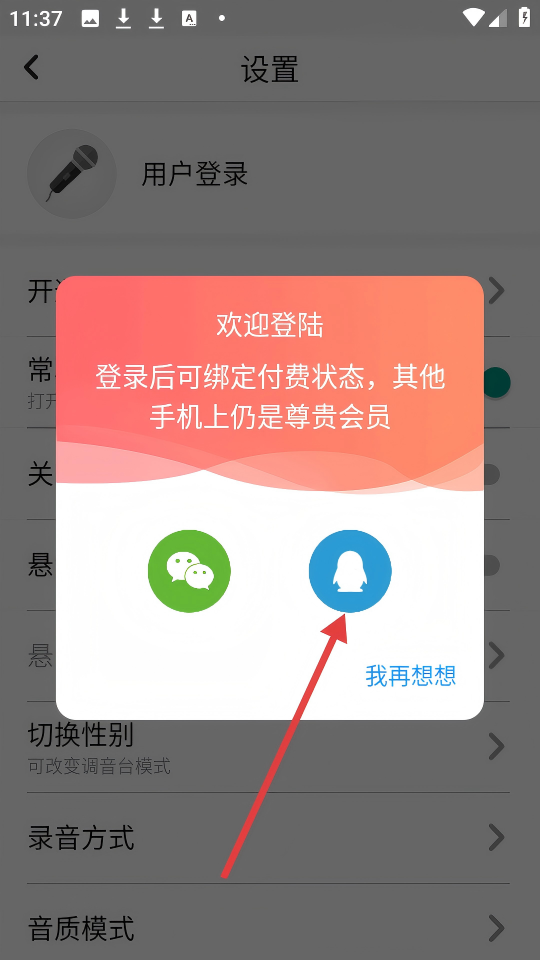 4、点击【QQ】图标可登录,登录后可绑定付费状态。