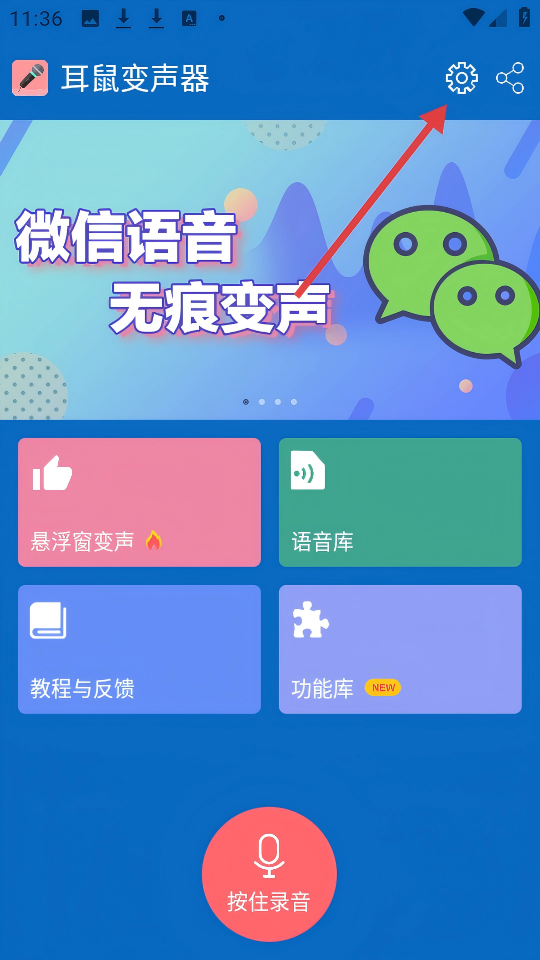 1、在【耳鼠变声器】主界面点击右上角【设置】图标,可进入设置页面。