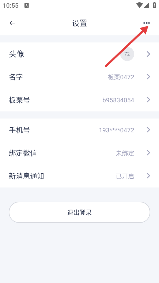 2、在设置页面,点击右上角三点图标,弹出操作选项。