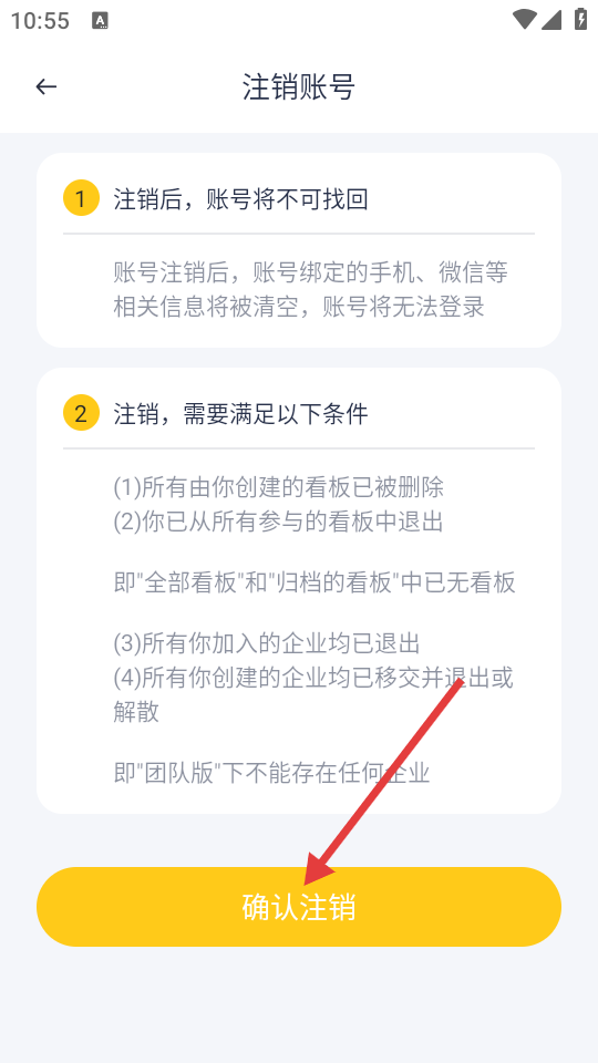 4、在注销账号说明页面,确认满足注销条件后,点击“确认注销”,完成账号注销操作。
