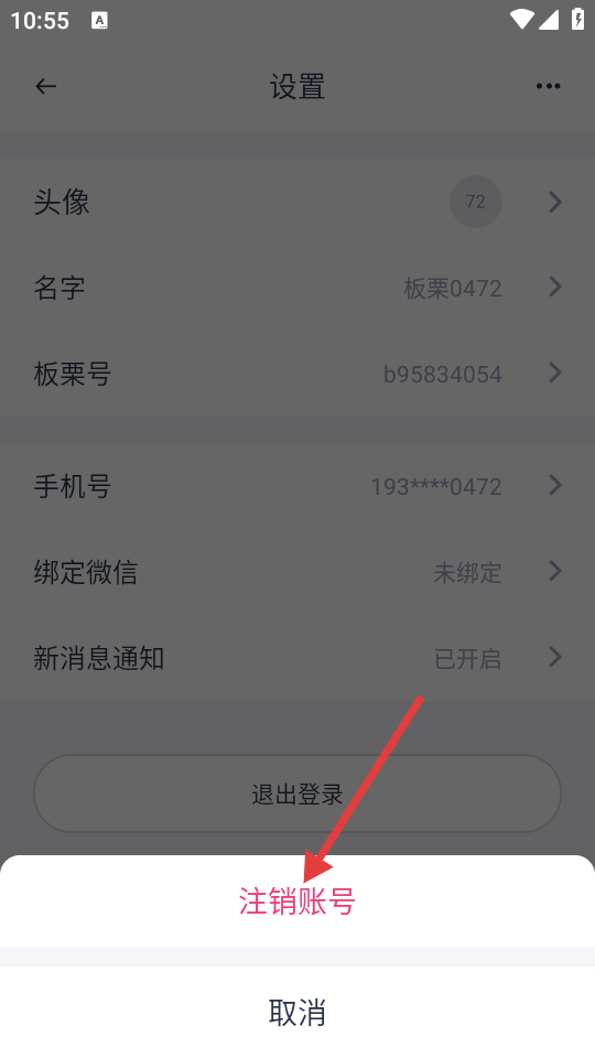 3、在弹出的操作选项中,点击“注销账号”,进入注销账号说明页面。