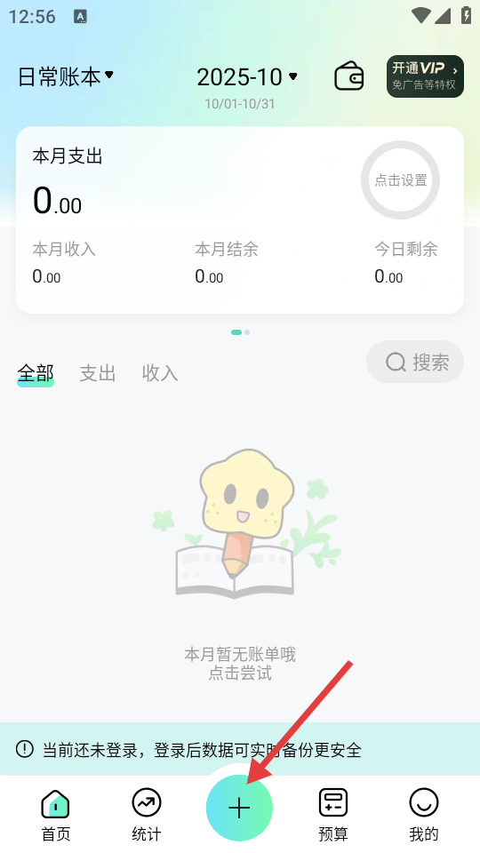 2、在主界面,点击底部“+”按钮,进入记账分类选择页面。