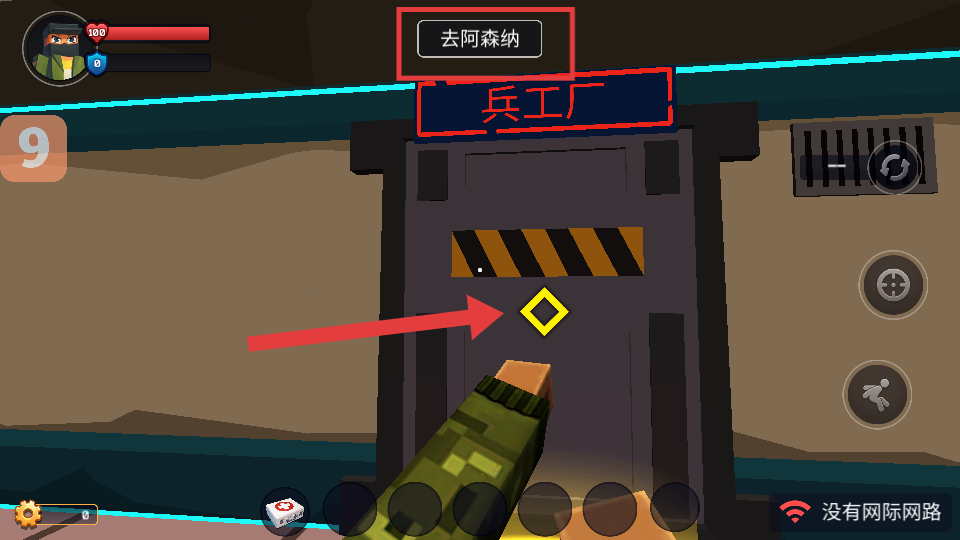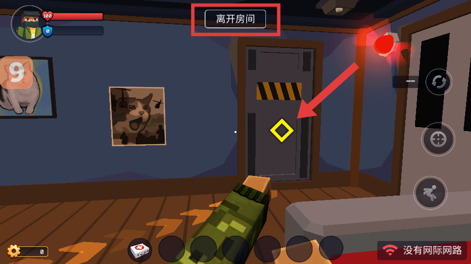 2、在房间内找到带有黄色菱形标记的门,点击进入,可前往不同区域(如兵工厂)。