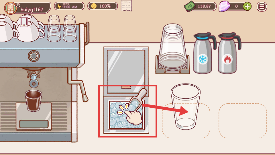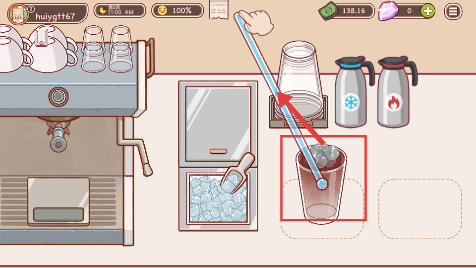 4、完成咖啡制作后,将咖啡拖动到小票处提供给客人。