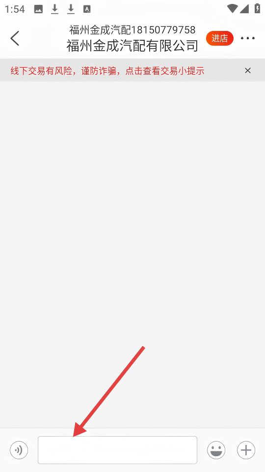 4、在与【福州金成汽配有限公司】的聊天界面中,可在【输入框】输入内容与商家交流。