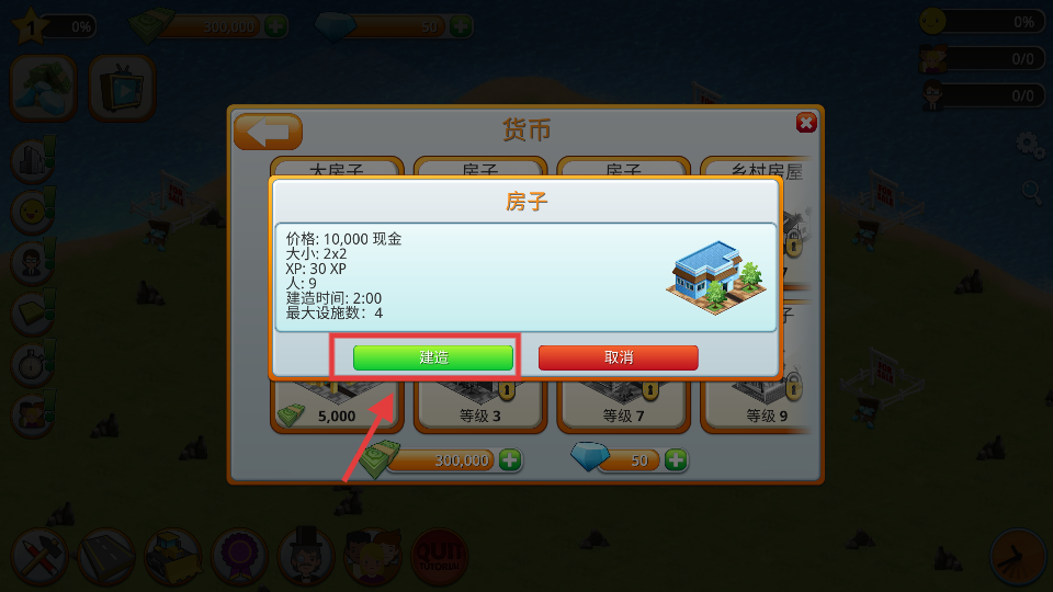2、在住宅建造界面,满足条件后点击【建造】,提升人口容量,为城市发展打基础。