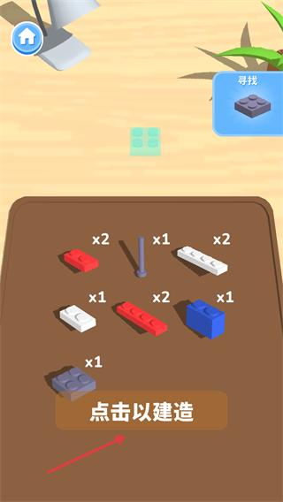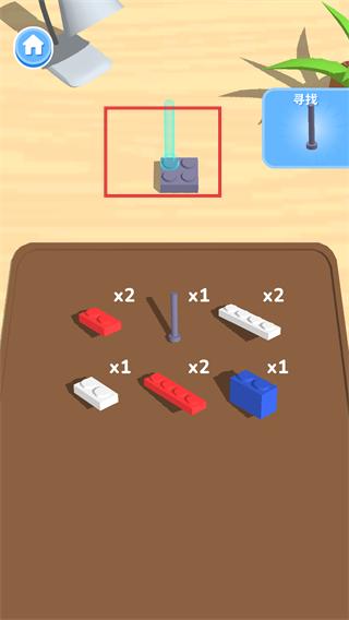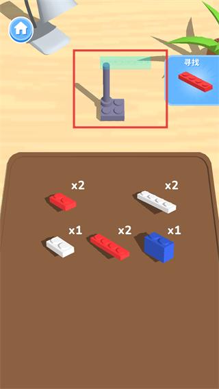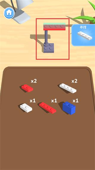 3、根据右侧【寻找】提示的红色积木,将其拼接至已组合的积木结构上,推进建造进度。