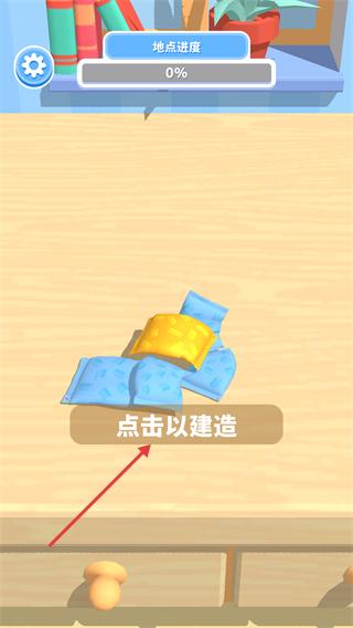 1、点击【点击以建造】,开始积木搭建流程,推进地点进度。