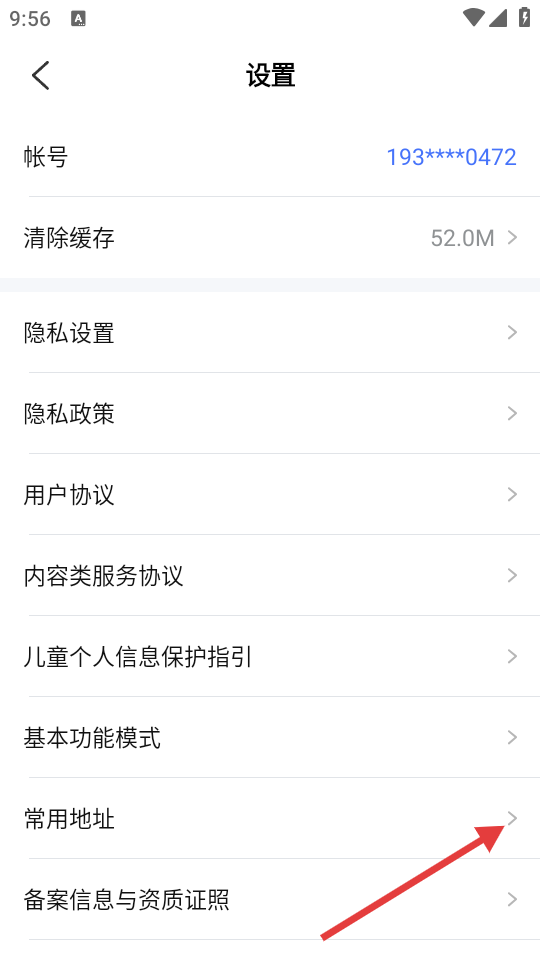 2、在设置界面中,点击【常用地址】选项以进入我的收货地址页面。