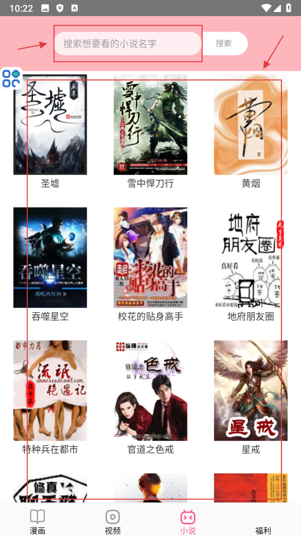 1、进入小说界面,可【搜索小说名称】,选择《圣墟》《雪中悍刀行》等小说,享受小说阅读乐趣。