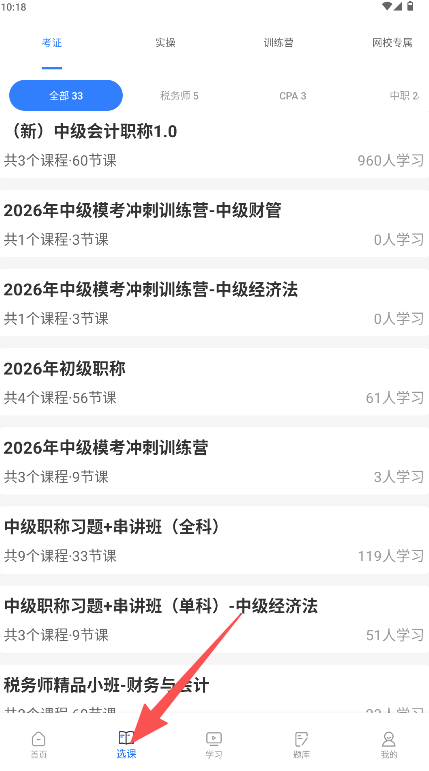 3、注册成功后,进入详情页“选课”选择“考证”目标课程。