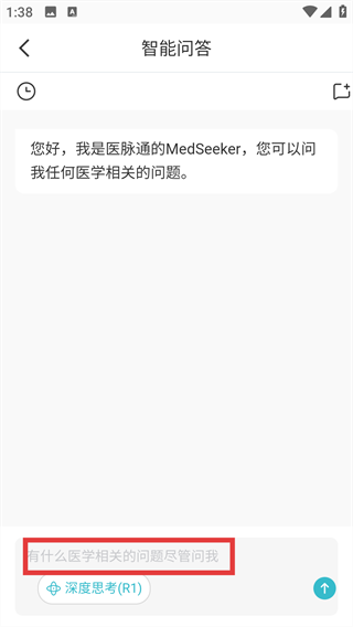 2、进入智能问答页,我们可以点击输入框,准备编辑医学相关问题呀。