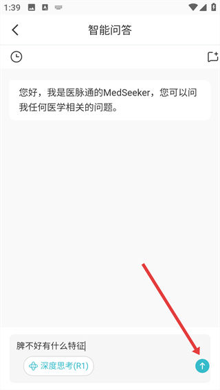 3、我们可以在输入框填问题,再点击发送按钮,提交医学相关疑问哦。