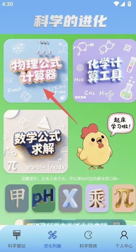 《科学的进化》是一款科学学习软件,提供物理公式计算器、化学计算工具、数学公式求解功能,还可记录科学知识点(含事件名称、涉及知识点等);助力用户开展科学计算、管理学习知识,是科学学习的实用工具。