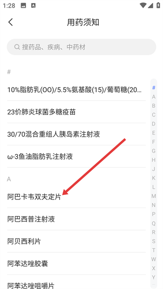 2、在用药须知页,选择【阿巴卡韦双夫定片】等药品进入其详情页哦。