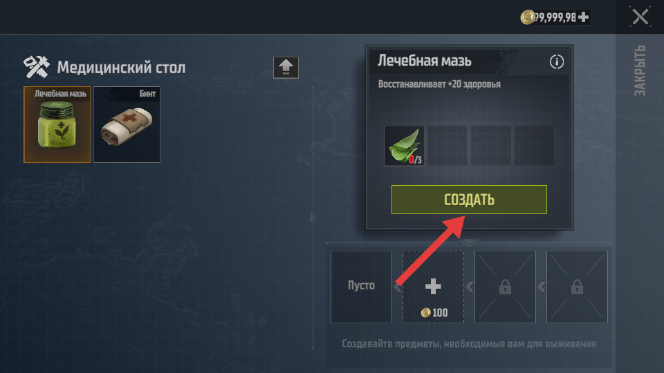 1、在医疗桌制作治疗药膏,恢复生命值,保障角色生存状态,提升续航能力。