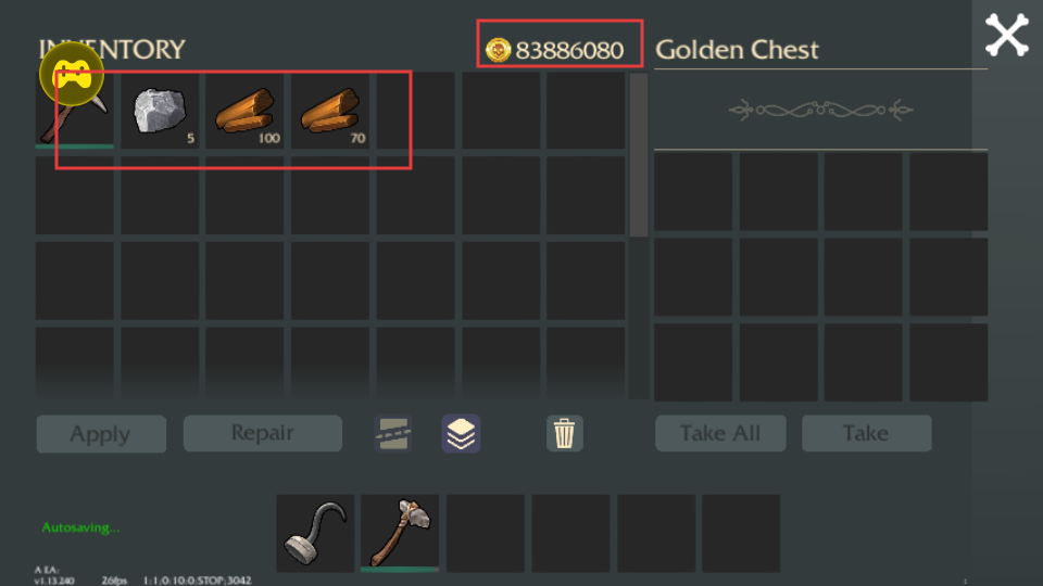 3、完成任务,破坏木桶获取斧头道具,提升资源采集和战斗能力。