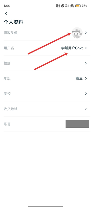 2、接着进入【个人资料】页面,找到【修改头像】与【用户名】选项。