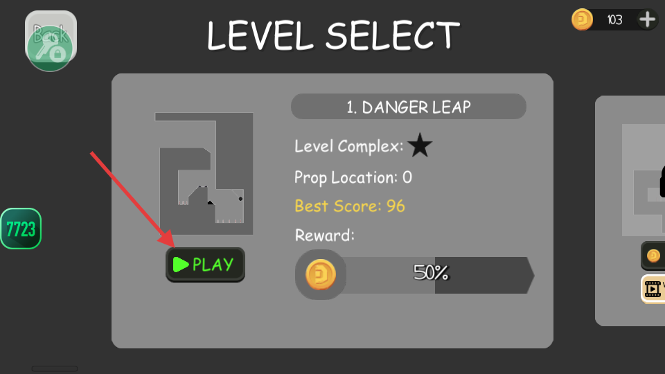 1、在关卡选择界面,点击“PLAY”进入“DANGERLEAP”关卡,开始火柴人坠落挑战。
