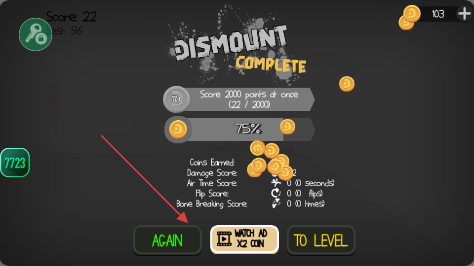 4、挑战结束后,可点击“AGAIN”重新挑战,不断尝试不同的姿态和道具组合,提升分数和游戏成绩。