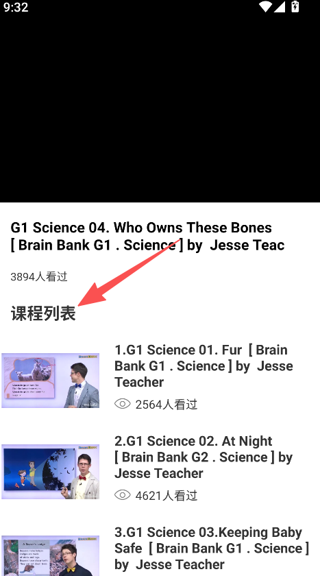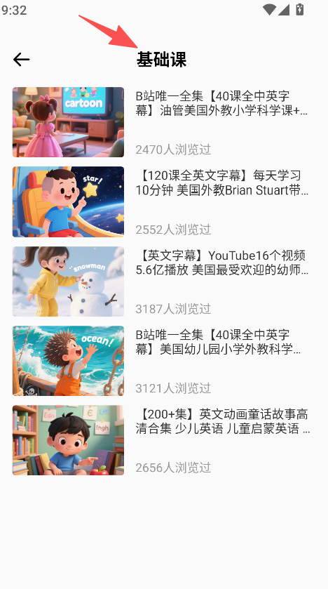 2、资源呈现详细,课程列表标注每课信息,英语故事说明浏览量,用户了解资源价值,选择学习更理性。