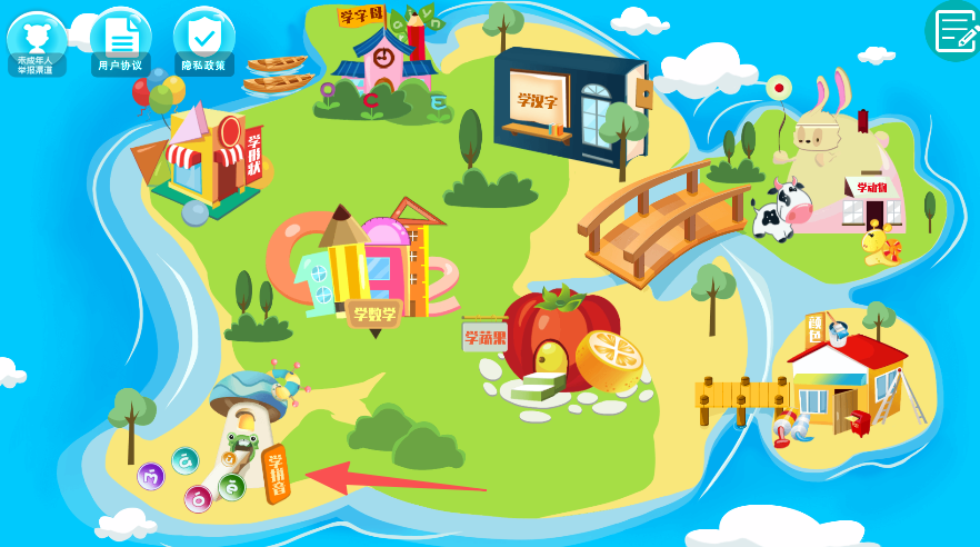 1、进入软件,选择学拼音等板块,进入拼音学习界面。