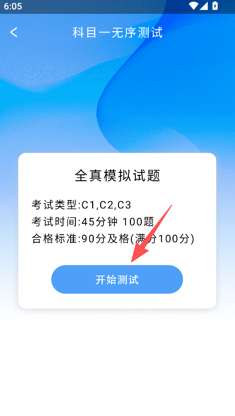 2、进入全真模拟测试,查看考试规则后点击开始测试。