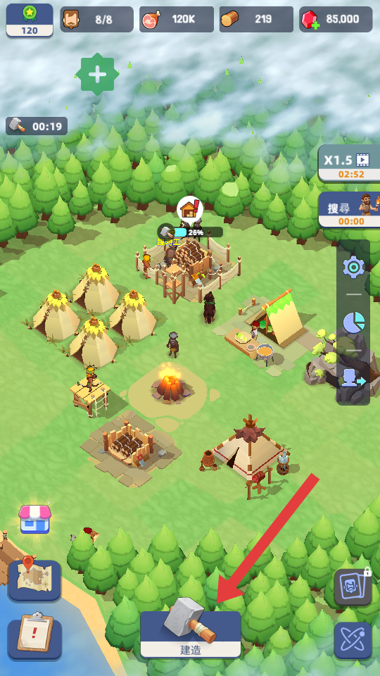 1、点击【建造】按钮,进入建筑建造界面,查看可建造的建筑列表。