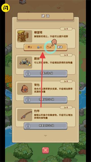 2、进入建造界面,优先建造瞭望塔,它可解锁新领土并提升视野,为后续探索和资源收集奠定基础,建造时需消耗对应资源。
