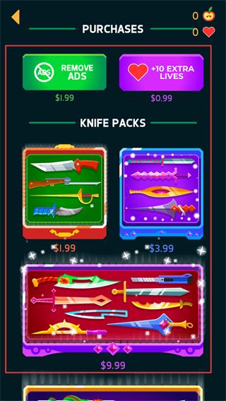 2、在商店的【KNIFE-PACKS】区域,选择对应的武器包购买,解锁新的飞刀样式。